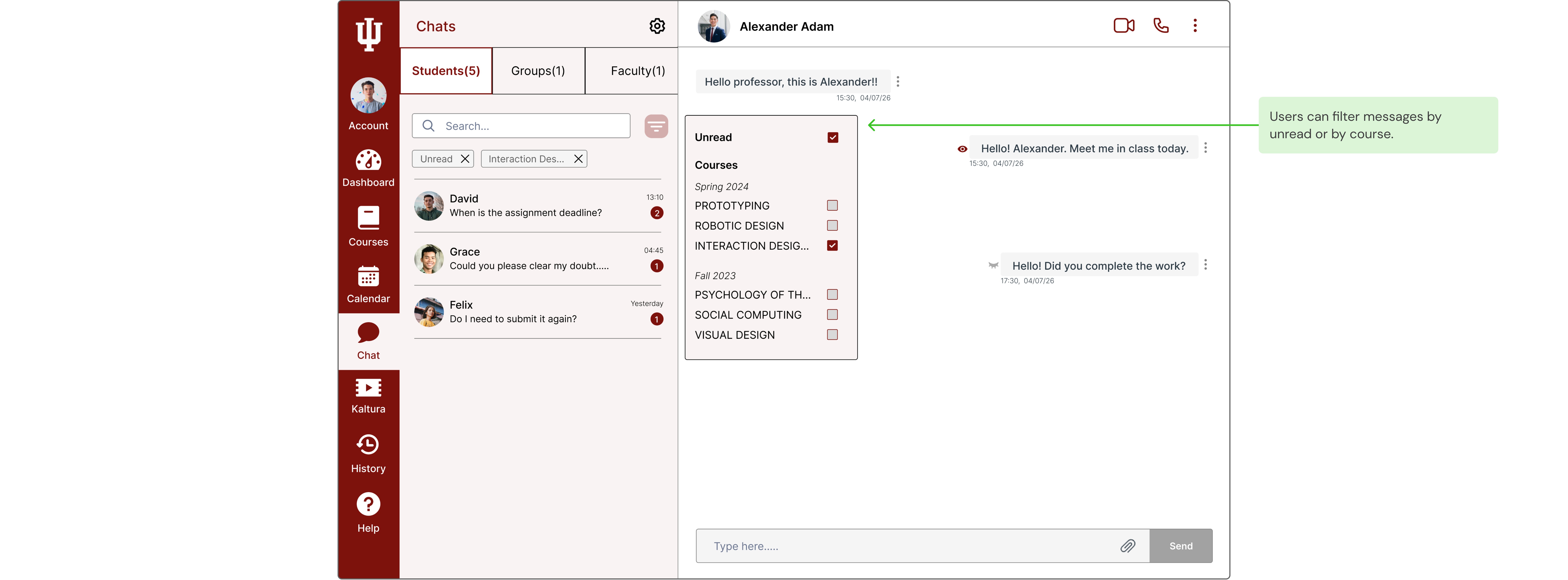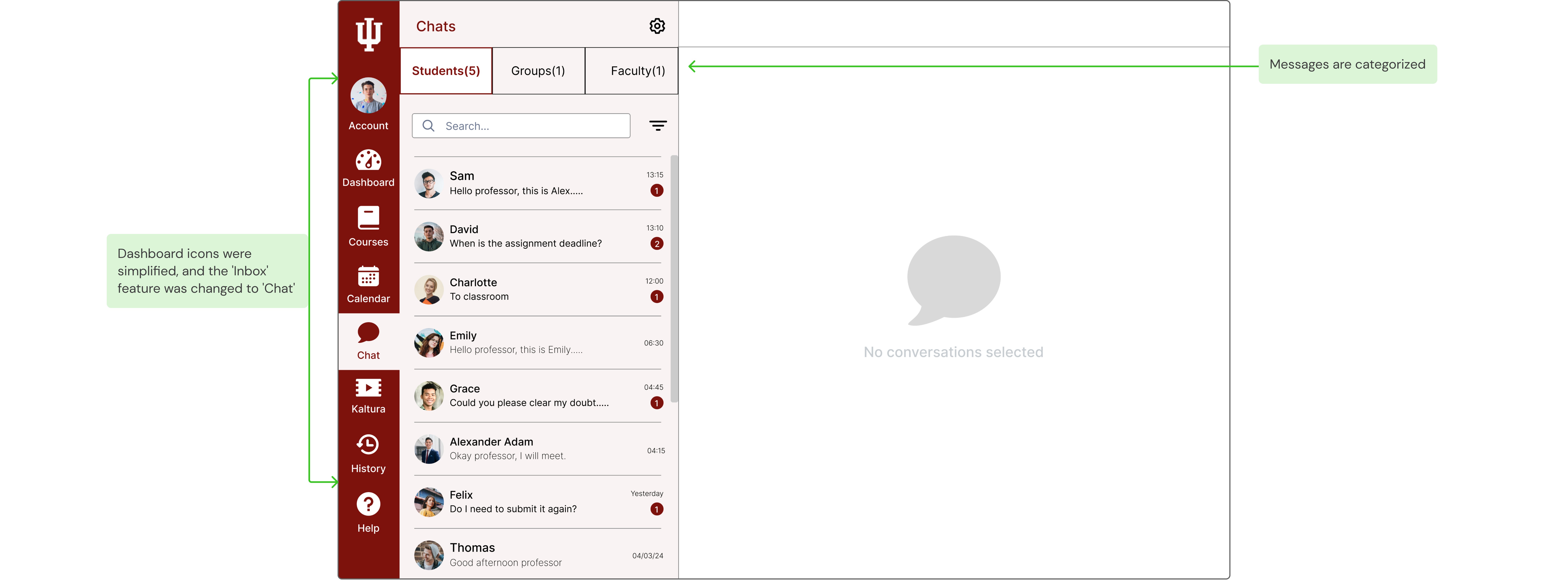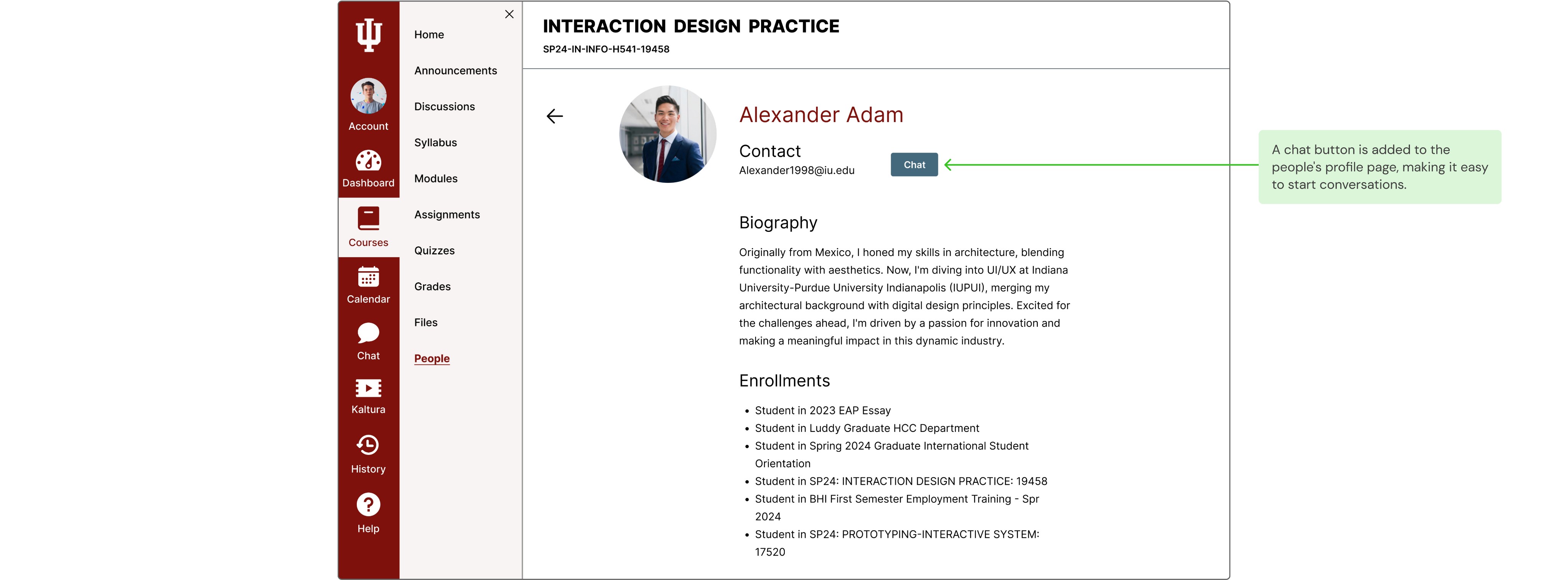 We redesigned the existing inbox feature in Canvas as 'Chat' making it easier for students to communicate with peers and faculty and collaborate on projects within the platform.