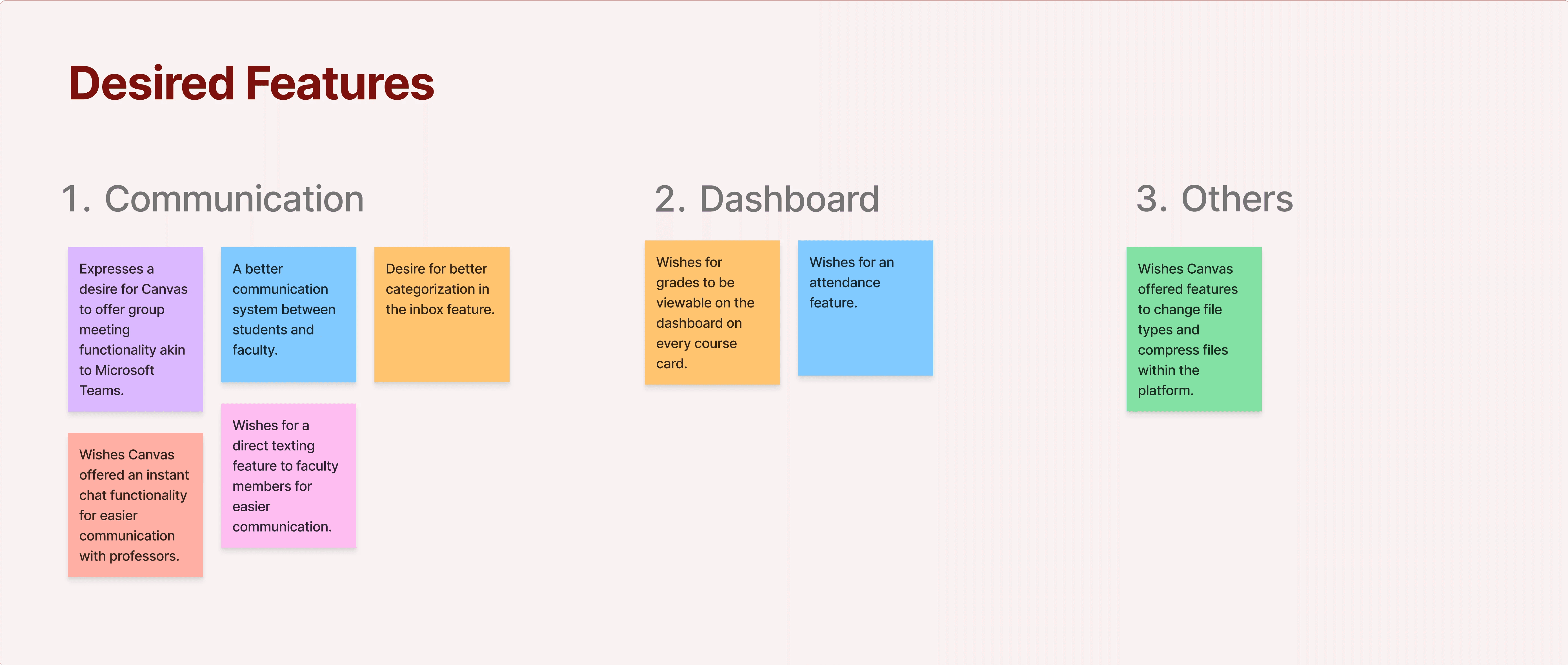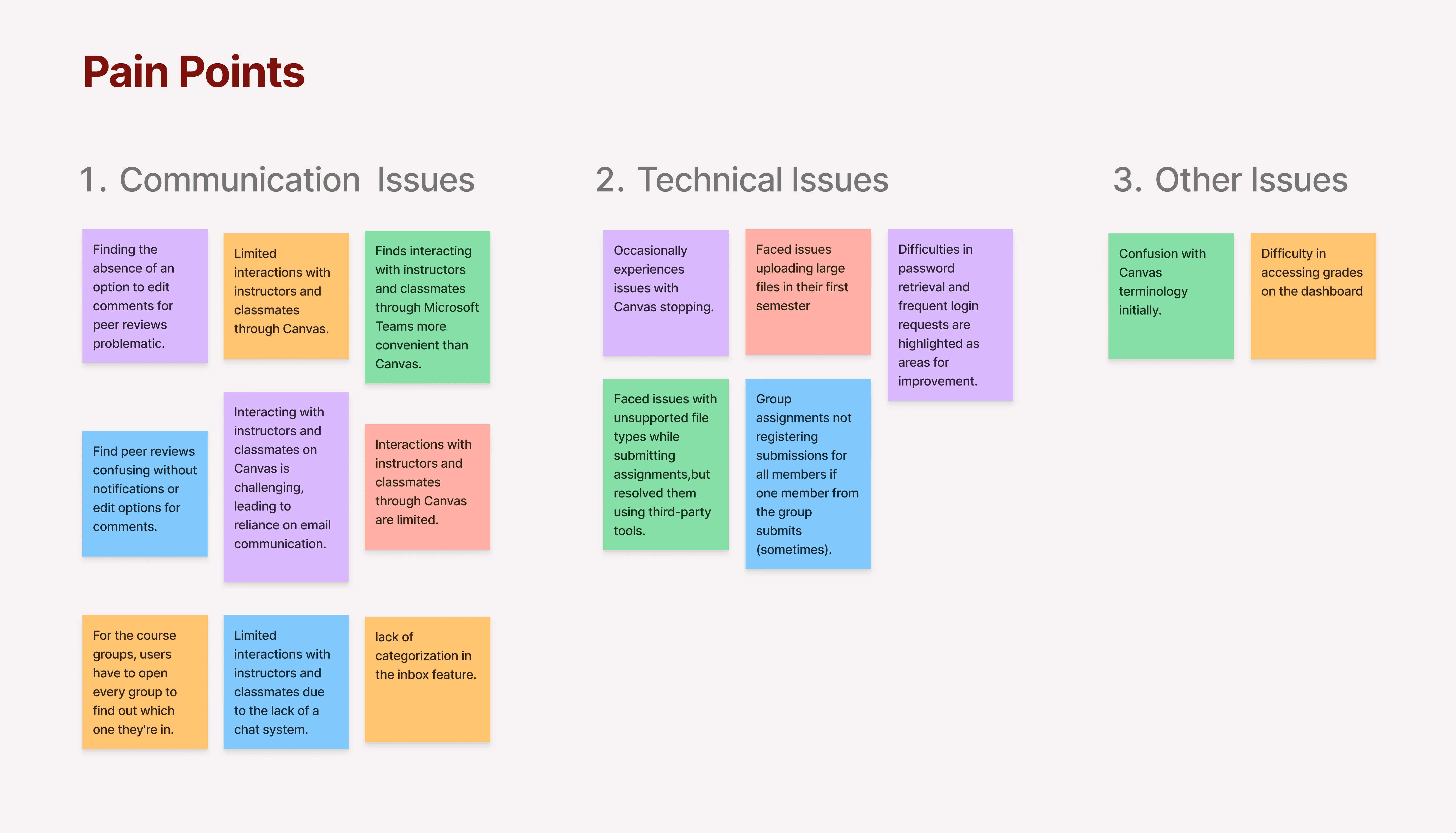We collected and categorized all user pain points and desired features into different sections. This categorization helped us identify the areas where users face the most issues.