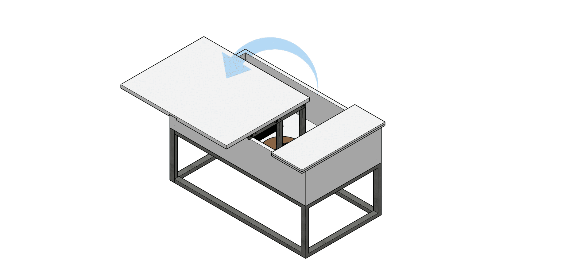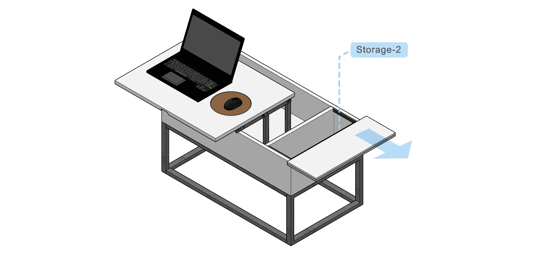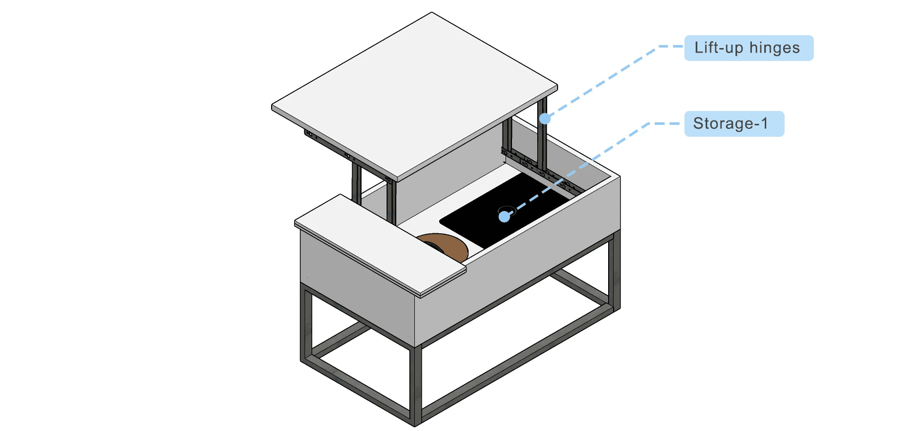 It will be lifted up with the help of ‘lift-up hinges’, and there is a storage space to keep laptops and stuff.