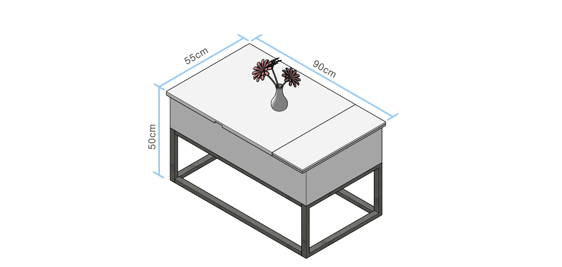 Coffee table with dimensions 90 x 55 x 50 cm